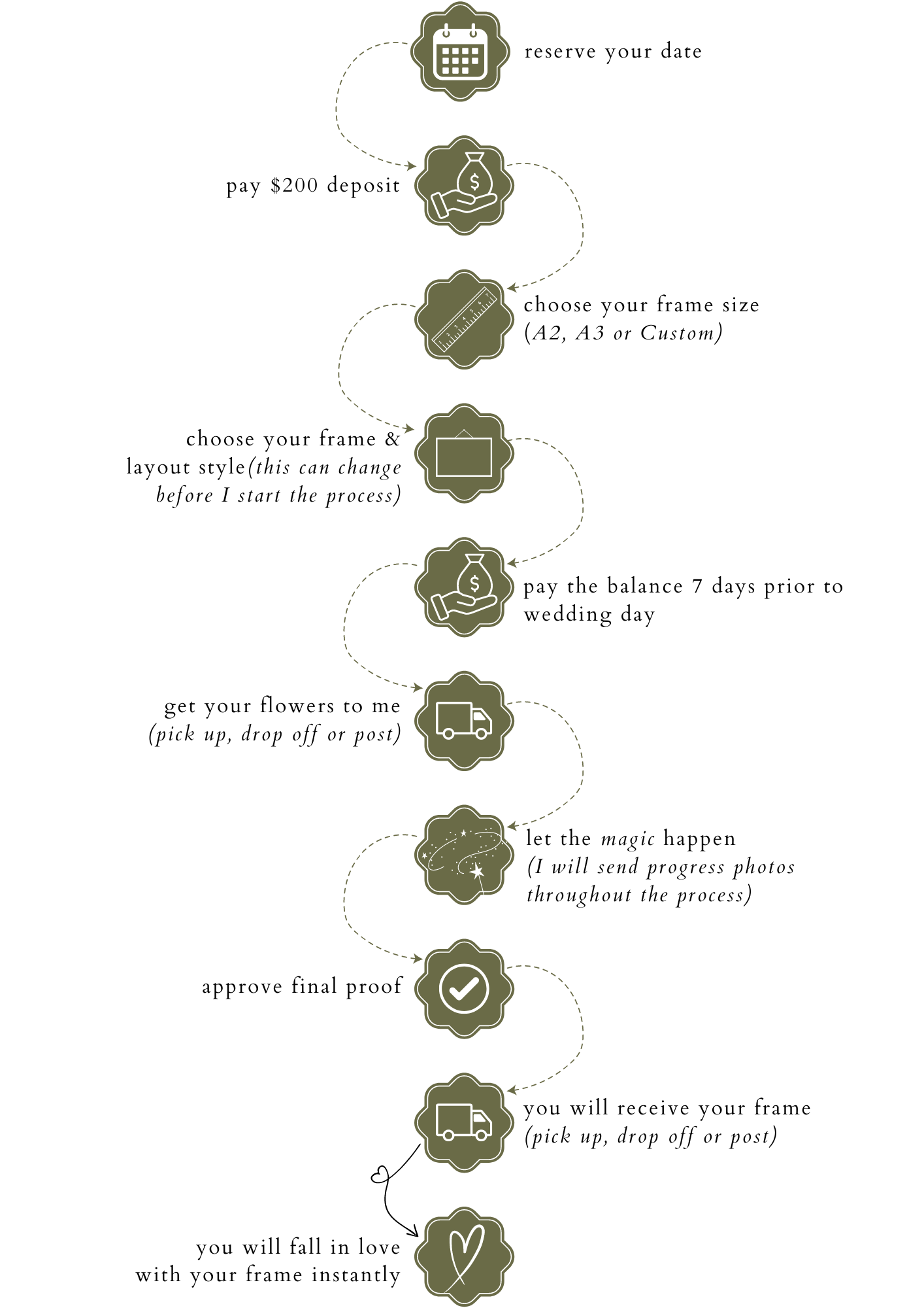 At Andrea Lee Creative I appreciate how many precious memories your bouquet holds, that is why you can trust that I will communicate with you every single step of the way during the preservation & creation process.